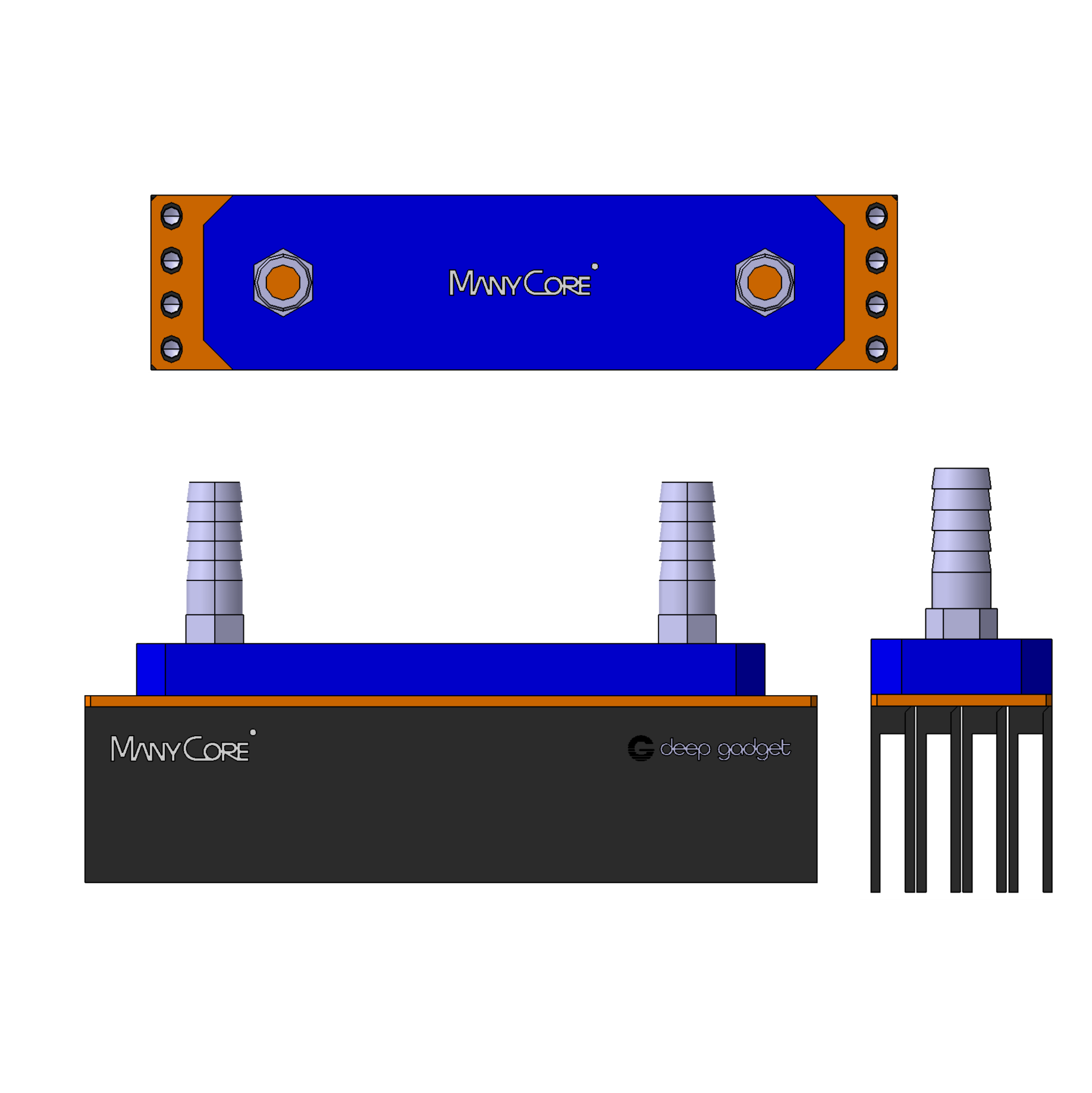 딥가젯만의 특허 기술인 StackFlow는 제한된 공간에서 최대의 방열 효율을 달성합니다. 중첩 라디에이터 구조와 유로 설계, 병렬 방식의 냉각 플로우로 안정적인 온도 관리가 가능합니다.