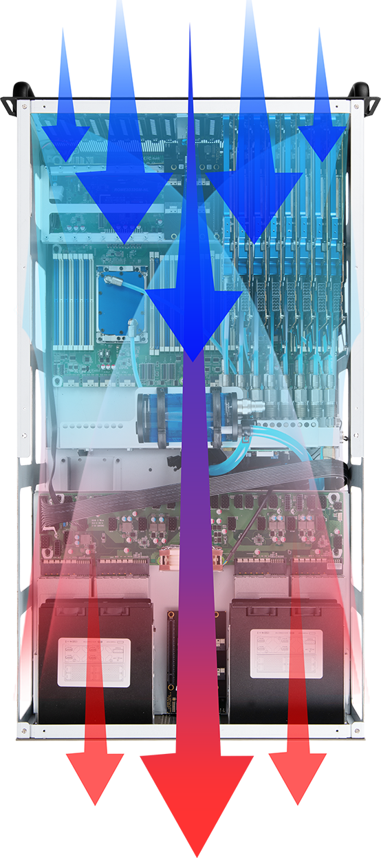 최적화된 Air Flow로 서버 앞에서 뒤까지 모두 냉각